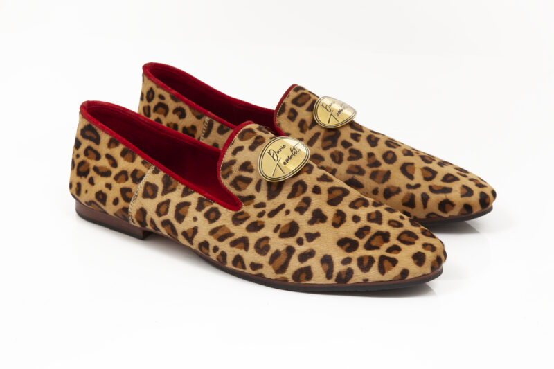 Loafer | Natural leather with fur | Buckles and logos are made of solid brass | Different colors | Different prints | Hand stitched | Leather sole completed with natural rubber | Made in EU | Free delivery in EU