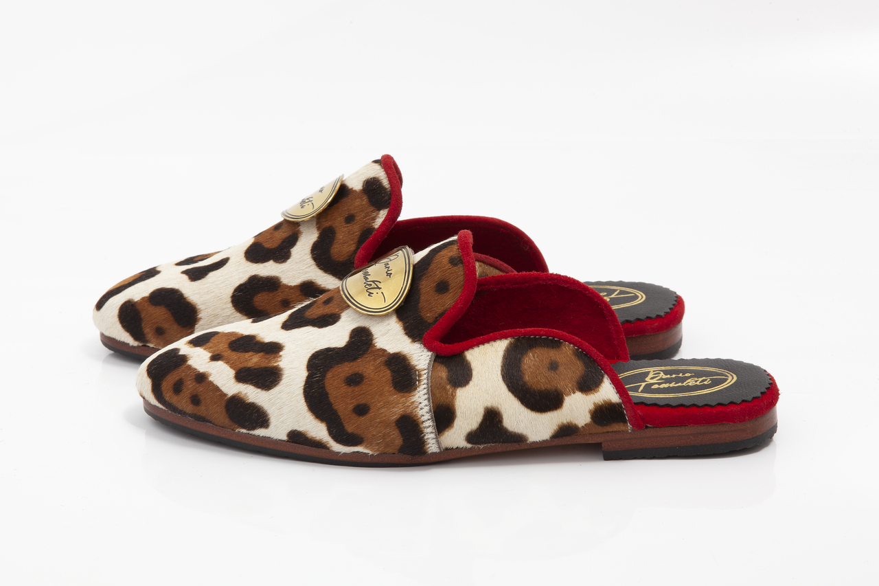 Sleepers | Natural leather with fur | Buckles and logos are made of solid brass | Different colors | Different prints | Hand stitched | Leather sole completed with natural rubber | Made in EU | Free delivery in EU