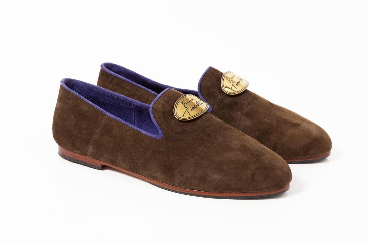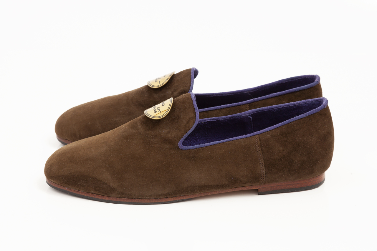 Loafer | Natural goat velour outside | Inside fine velour lining in diferent colors | Buckles and logos are made of solid brass | Different colors  | Hand stitched | Leather sole completed with natural rubber | Made in EU | Free delivery in EU